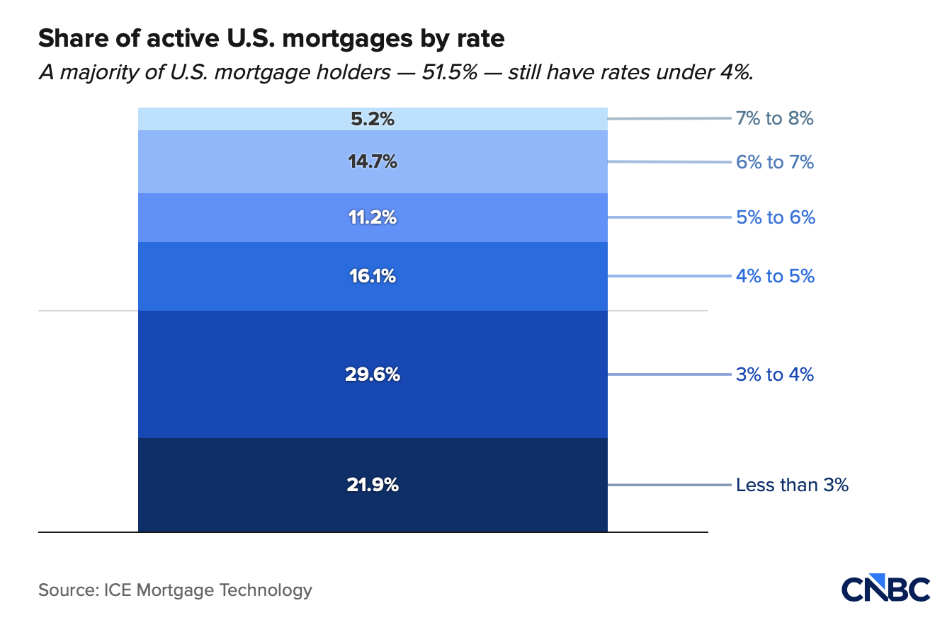 So if this market is frozen because of the difference between mortgage rates set on homes bought in the past, and the rates currently available on the market, how big is that gap and how many people are sitting on low mortgage rates?.